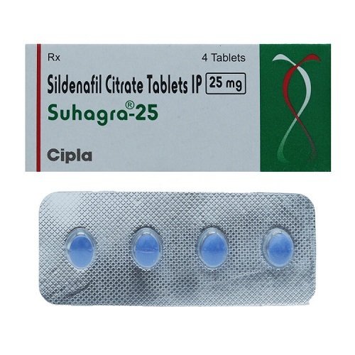 Le compresse di Suhagra 100 mg contengono sildenafil. È meglio conosciuto come la piccola pillola blu. È un farmaco efficace per il trattamento della disfunzione erettile (DE) negli uomini. La disfunzione erettile è una condizione in cui un uomo non è in grado di raggiungere e/o mantenere un'erezione sufficiente per un rapporto sessuale. Si verifica in seguito a un ridotto apporto di sangue dovuto a lesioni fisiche e ad alcune malattie o condizioni psicologiche come ansia, stress, depressione, ecc. La compressa Suhagra 100 mg rilassa i vasi sanguigni e aiuta ad aumentare il flusso sanguigno al pene.